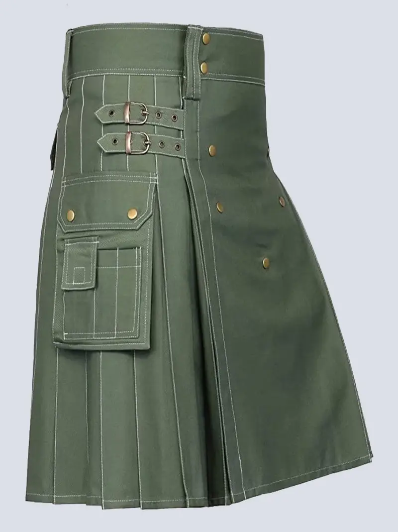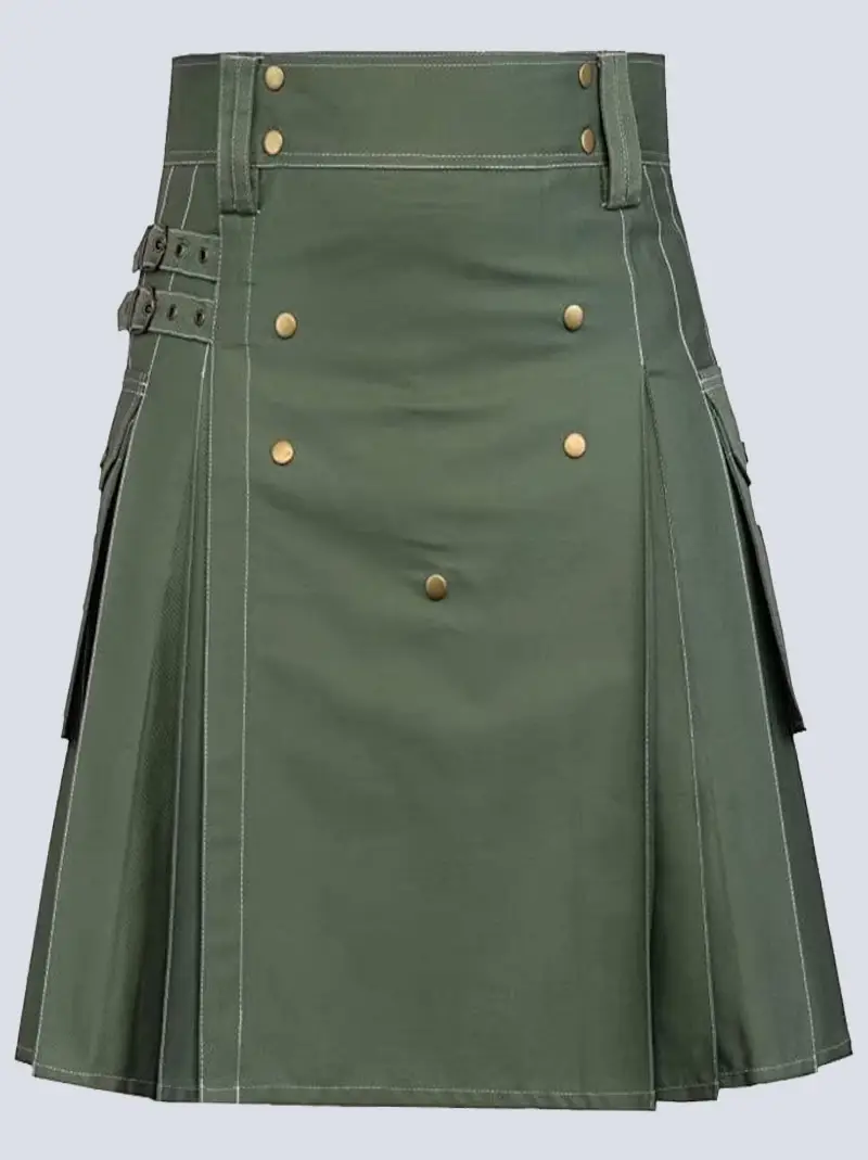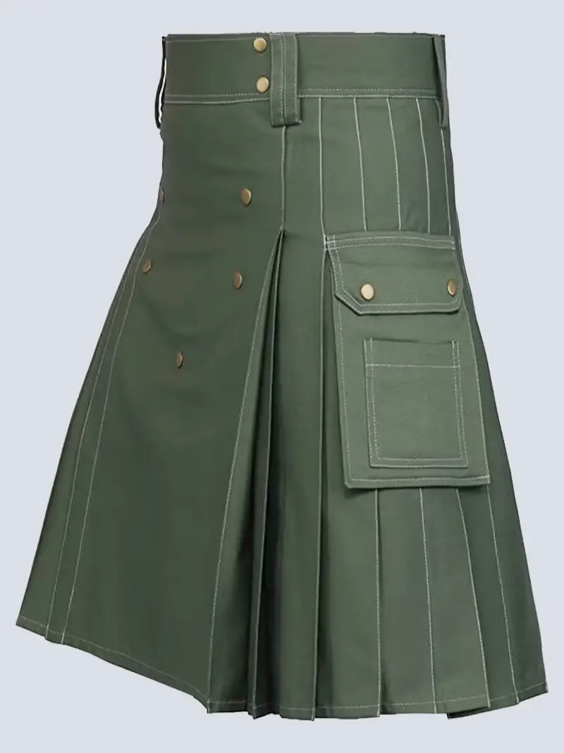 OLIVEGREEN UTILITY KILT WITH WHITE THREAD
